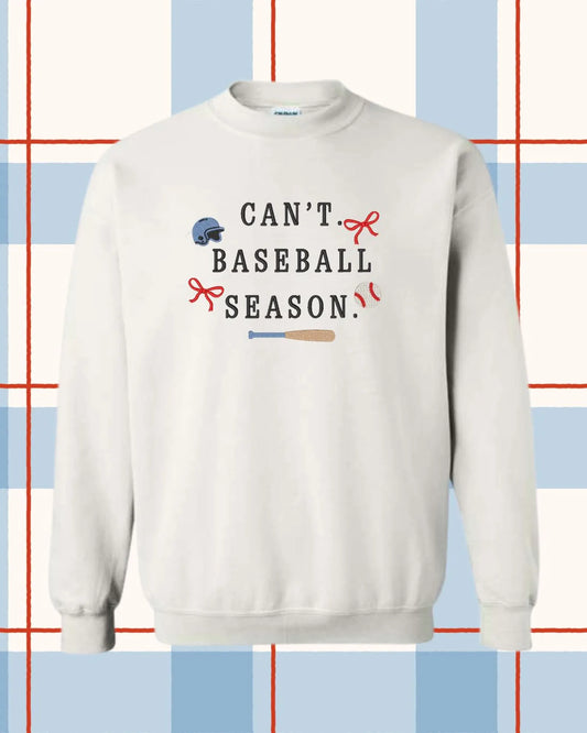 Can't Baseball Season Embroidered Sweatshirt - Game Day Coquette Baseball Mom Crewneck