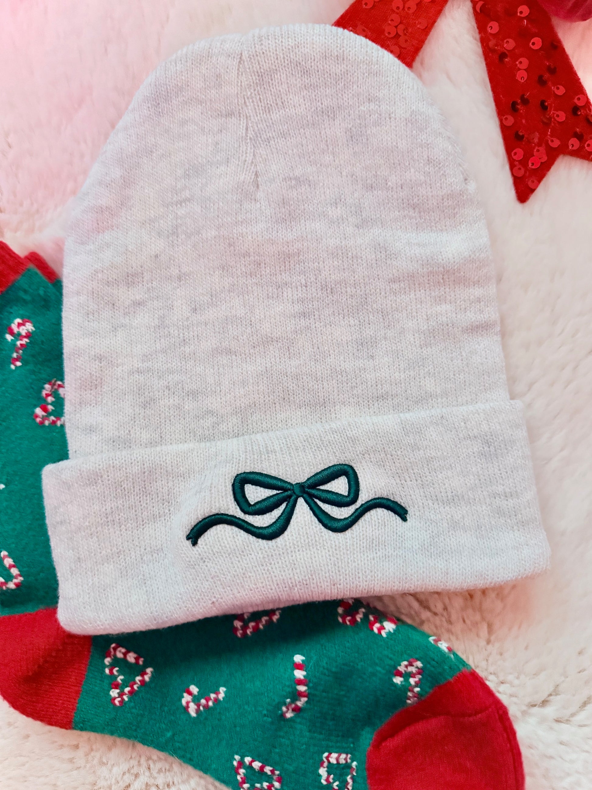 3D Bow Embroidered Beanie